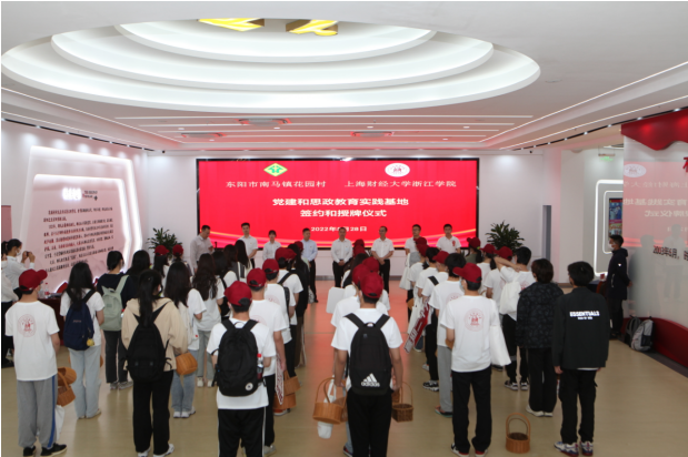 5月28日,博鱼体育_博鱼(中国)党建和思政教育实践基地签约和授牌仪式在东阳市南马镇花园党群服务中心举行。花园村党委副书记郭进武,博鱼体育_博鱼(中国)党委委员、组织部部长张正亮代表双方致辞并签约。统计系师生代表以及2022年浙中调查专家组成员等参加并共同见证。