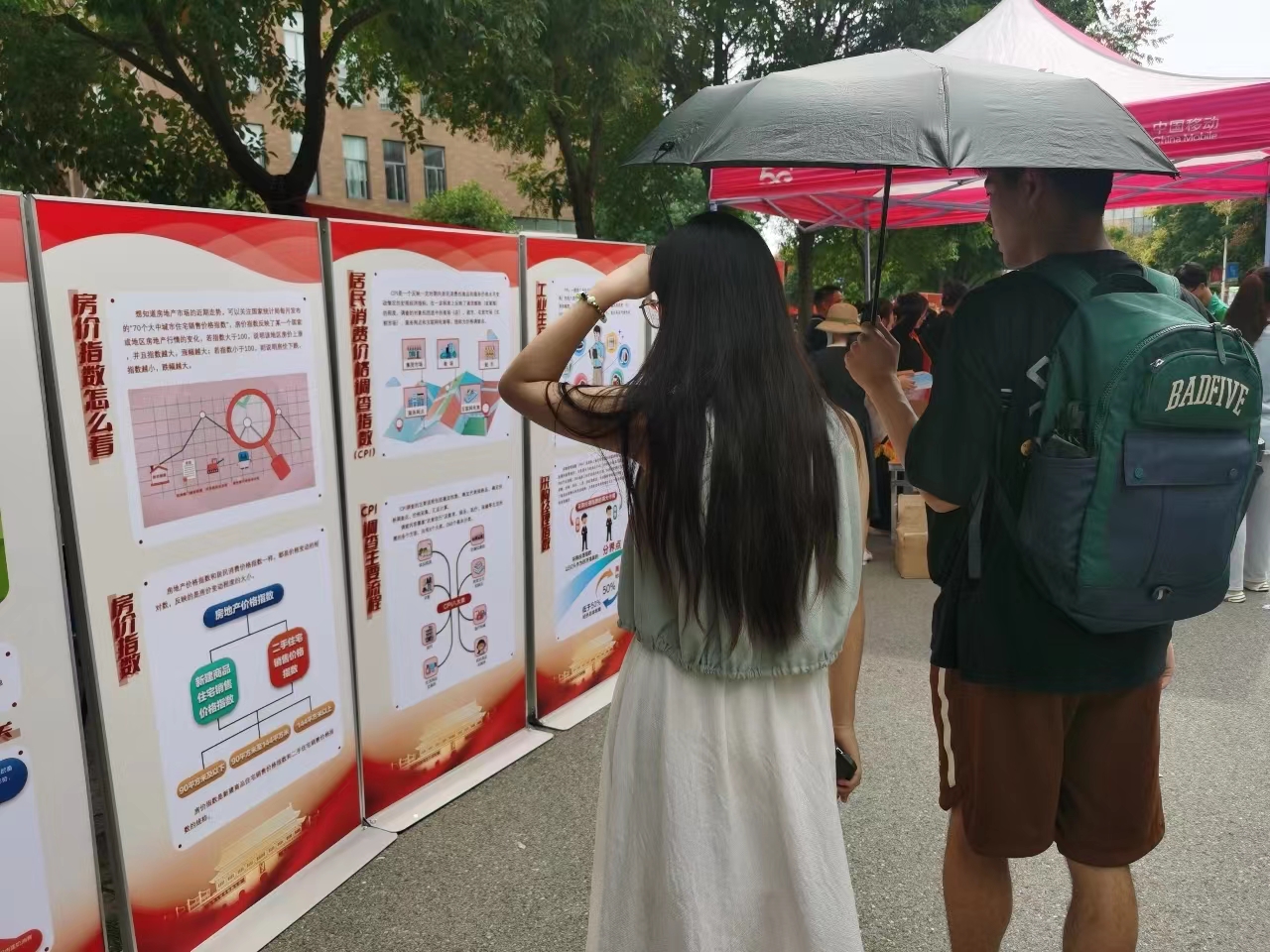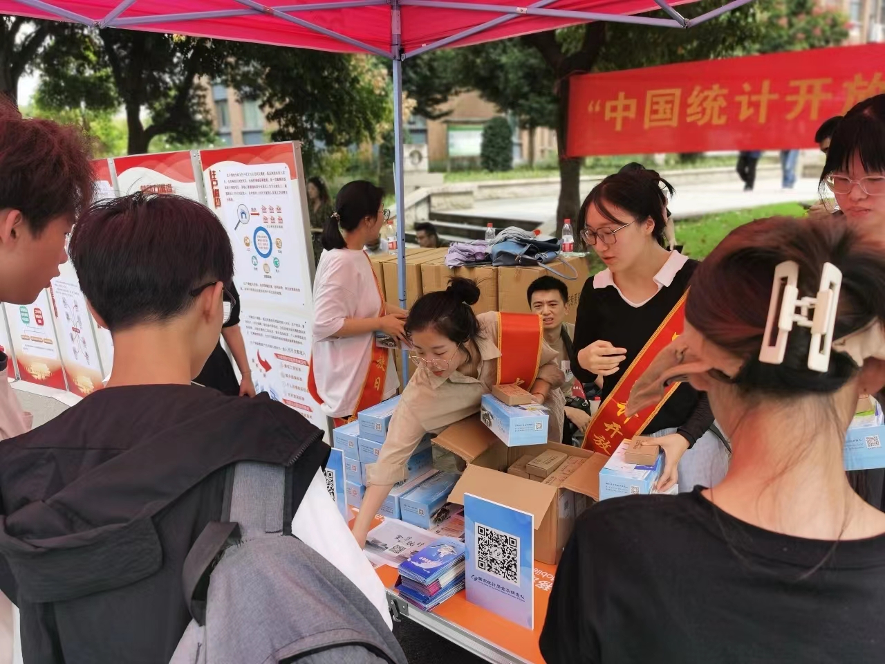 在现场,工作人员对高校学生开展经济普查和统计法宣传推广,对于大学生们和社会各界普遍关注的居民收入、CPI、房价涨跌等统计数据怎么出炉的等统计话题做了专业解答,让现场大学生们尤其是统计专业学生更好地了解统计、走近统计、感受统计。