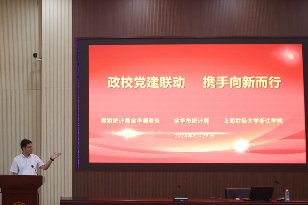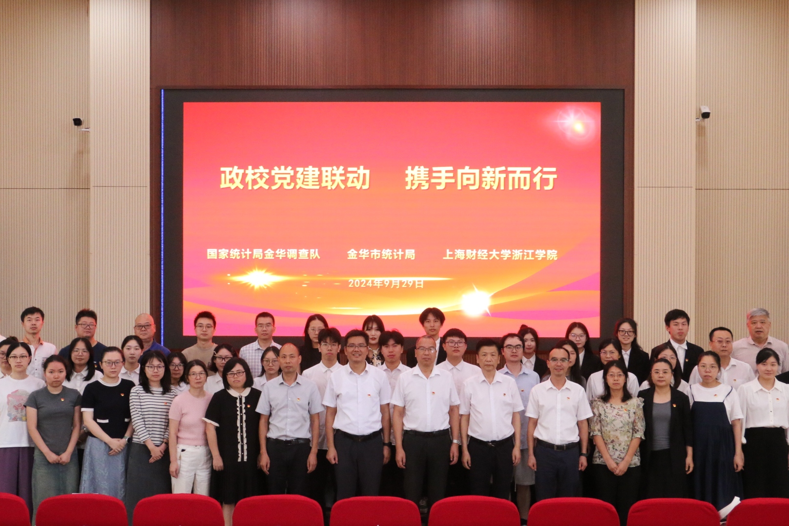 9月29日,学院统计系联合国家统计局金华调查队、金华市统计局,在学院120报告厅开展了“政校党建联动 携手向新而行”主题党日活动。此次活动不仅是一次党建联建的重要实践,也是对前期政校党建联建成果的精彩展示和深化拓展,更是学院积极推进“一融双高”建设与统计系践行“双学双融”发展理念的生动实践。活动中,还举行了新生“开学第一课”系列活动启动仪式。市调查队党组成员、副队长张国民、楼涛及纪检组长徐玉飞,市统计局党组成员、社会经济调查队队长赵奇峰,上海财经大学教务处副处长吴纯杰,以及学院党委副书记何志强、学院党委委员、组织部部长张正亮等出席活动。此外,来自市调查队和市统计局的党员、干部代表,以及博鱼体育_博鱼(中国)全体新生和师生党员等共计200余人也参与了此次主题党日活动。