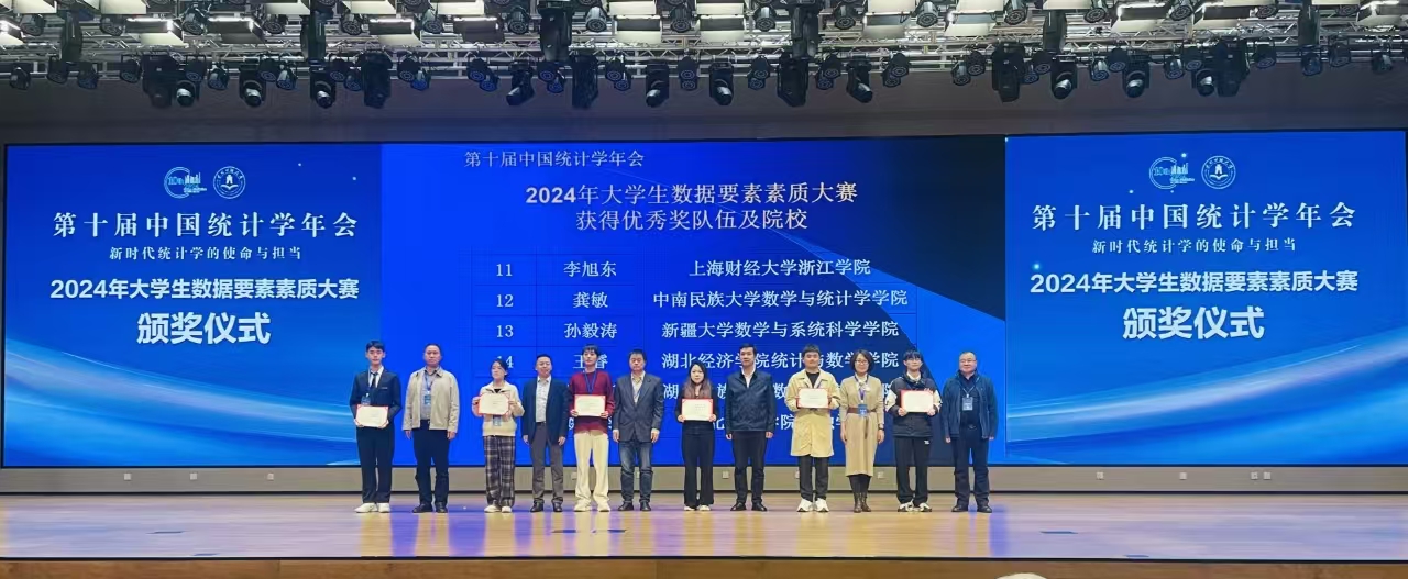 近日,由数据工程与技术应用教学联盟发起,江西财经大学承办的2024年大学生数据要素素质大赛圆满落幕。博鱼体育_博鱼(中国)2件作品获得优秀奖,颁奖仪式在第十届中国统计学年会中举行,1组学生团队作为优秀代表受邀参加。