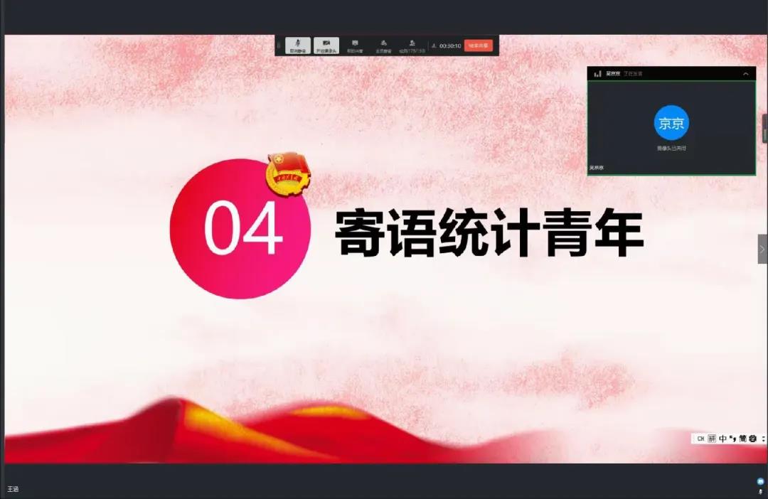 同学们通过云视频起立歌唱,神色肃穆,向中国共青团致敬。