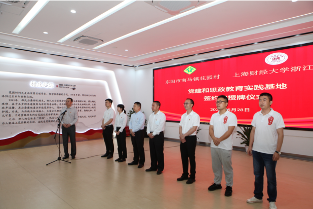 5月28日,博鱼体育_博鱼(中国)党建和思政教育实践基地签约和授牌仪式在东阳市南马镇花园党群服务中心举行。花园村党委副书记郭进武,博鱼体育_博鱼(中国)党委委员、组织部部长张正亮代表双方致辞并签约。统计系师生代表以及2022年浙中调查专家组成员等参加并共同见证。